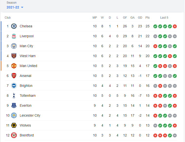 Especially for the current position of the Arsenal Football Club on the EPL table.